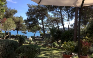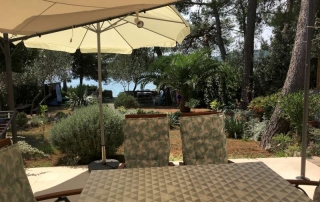 situated in the green surrounding of pine trees. Terraces are oriented towards the sea which that is accessed through the courtyard.